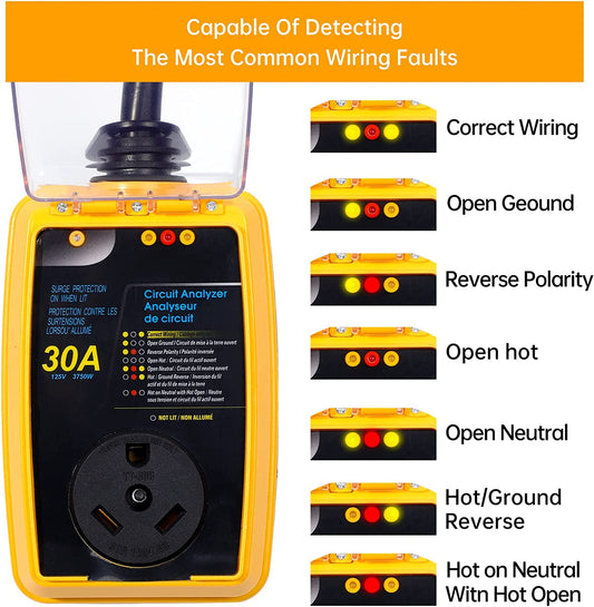 MID RV Surge Protector 30 Amp Circuit Analyzer with LED Indicator Light 30 Amp Male to 30 Amp Female for RV Trailer
