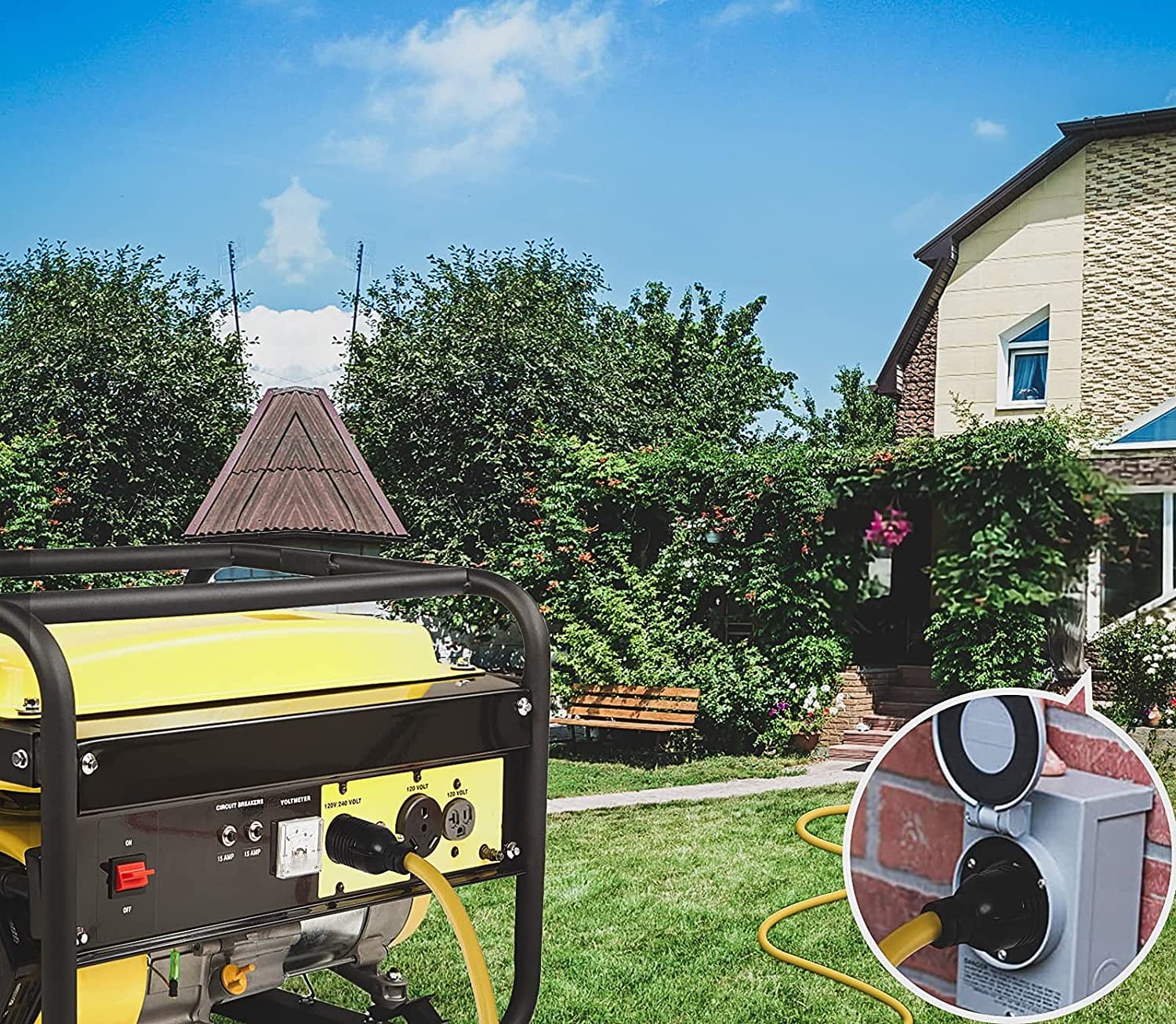 25 Feet 10AWG SJTW NEMA L14-30P to L14-30R 125/250V 30Amp 7500W Twist Lock 4 Prong Male Receptacle Generator Extension Cord With L14-30P to 5-15R 5-20R Adapter Cable Organizer