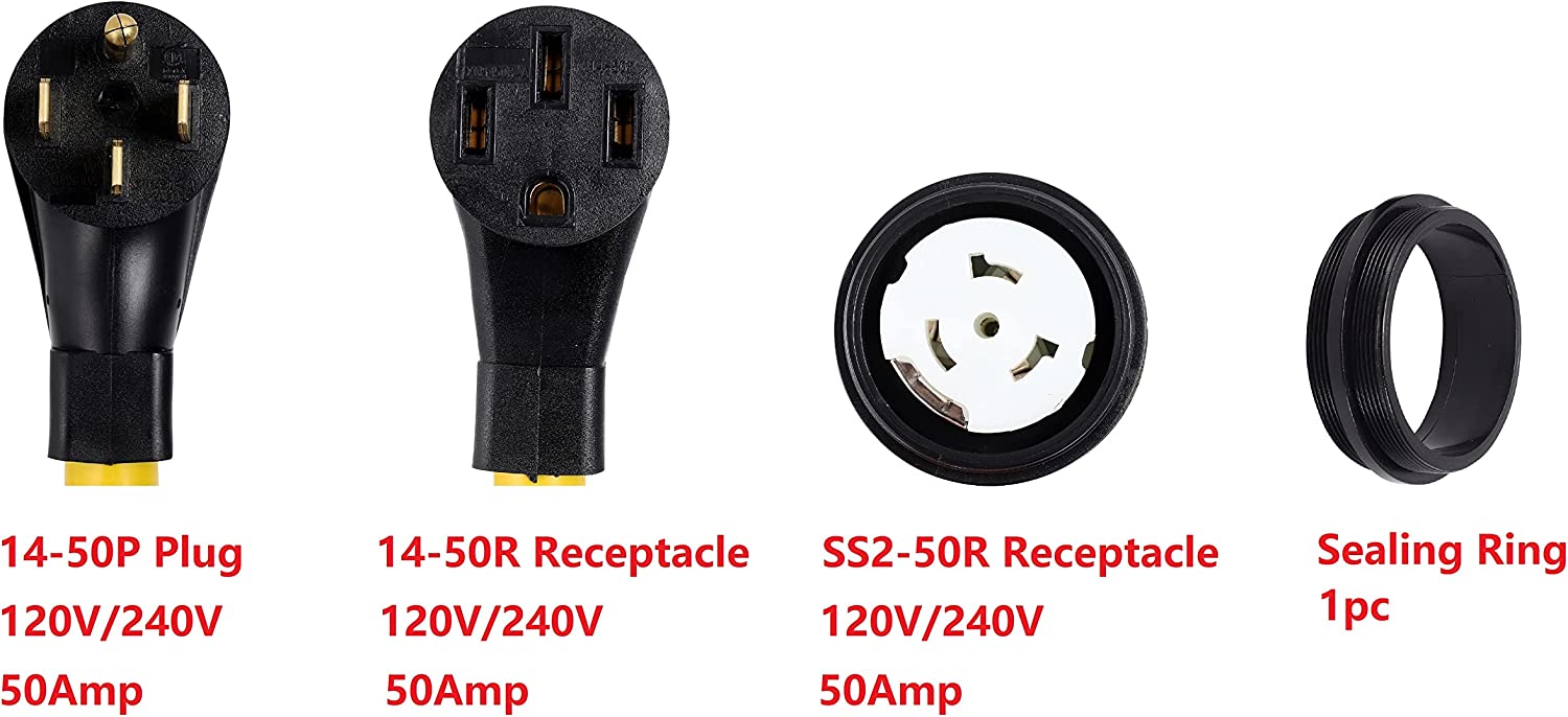 - NEMA 14-50P to 14-50R SS2-50R, 120V/240V 50 Amp