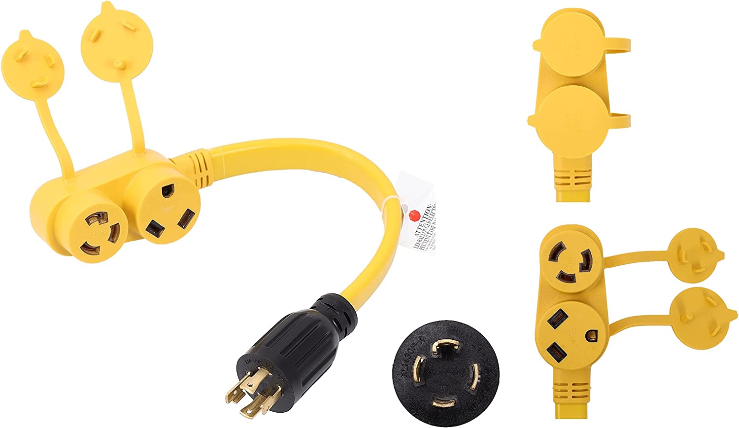 NEMA L14-30P to L5-30R/TT-30R Splitter 2 Outlet 120V 30 Amp 1.5 FT 10 AWG 4 Prong Male Plug to 3 Prong Twist Lock Female Receptacle RV Generator Power Cord Adapter
