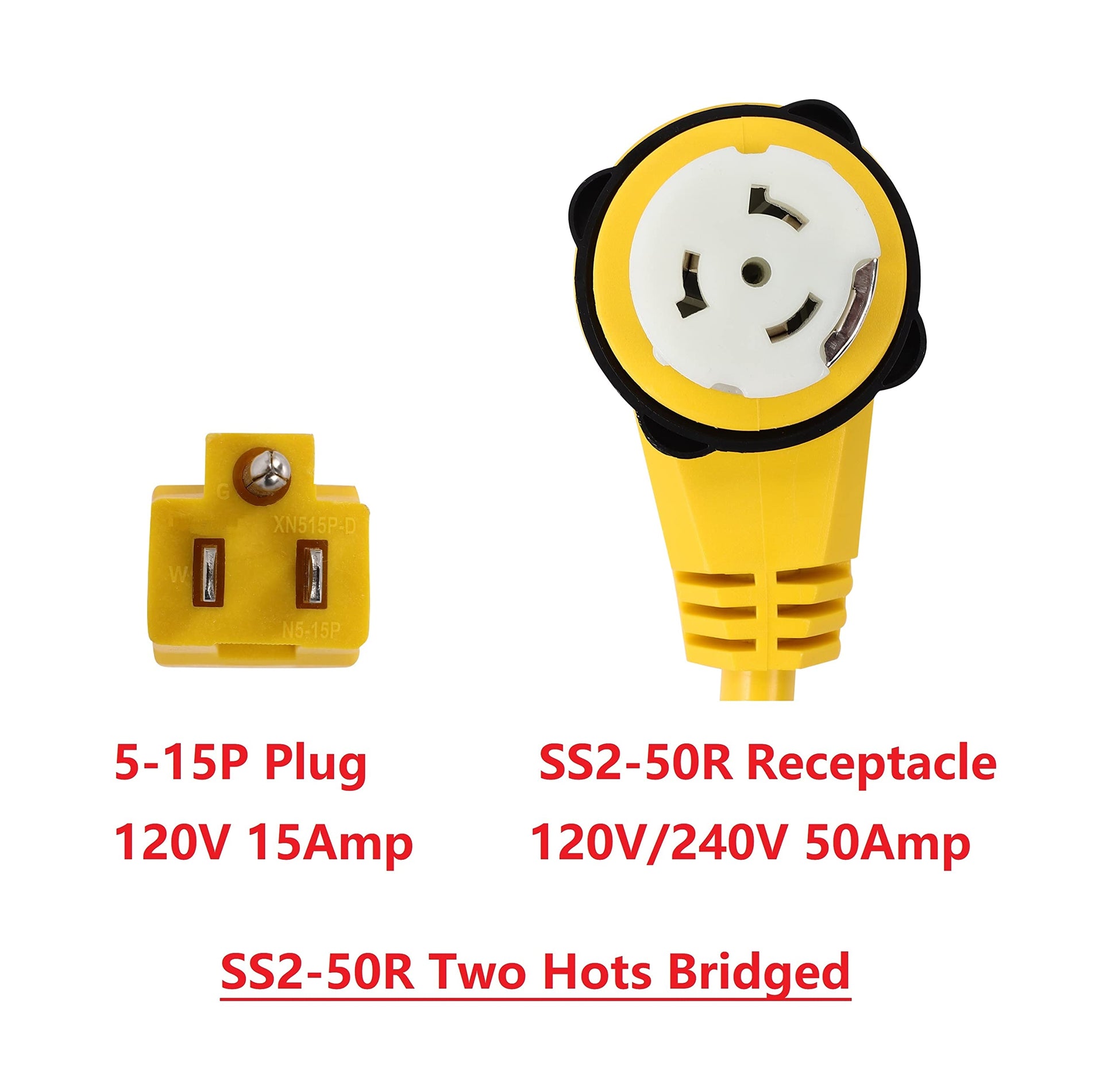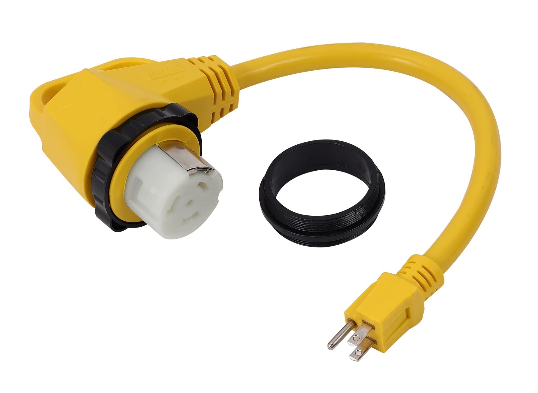 ONETAK 5-15P to SS2-50R Right Angle 90 Degree 120V 15 Amp 3 Prong Male to 4 Prong Twist Lock Receptacle Generator RV Marine Shore Boat Power Cord Adapter