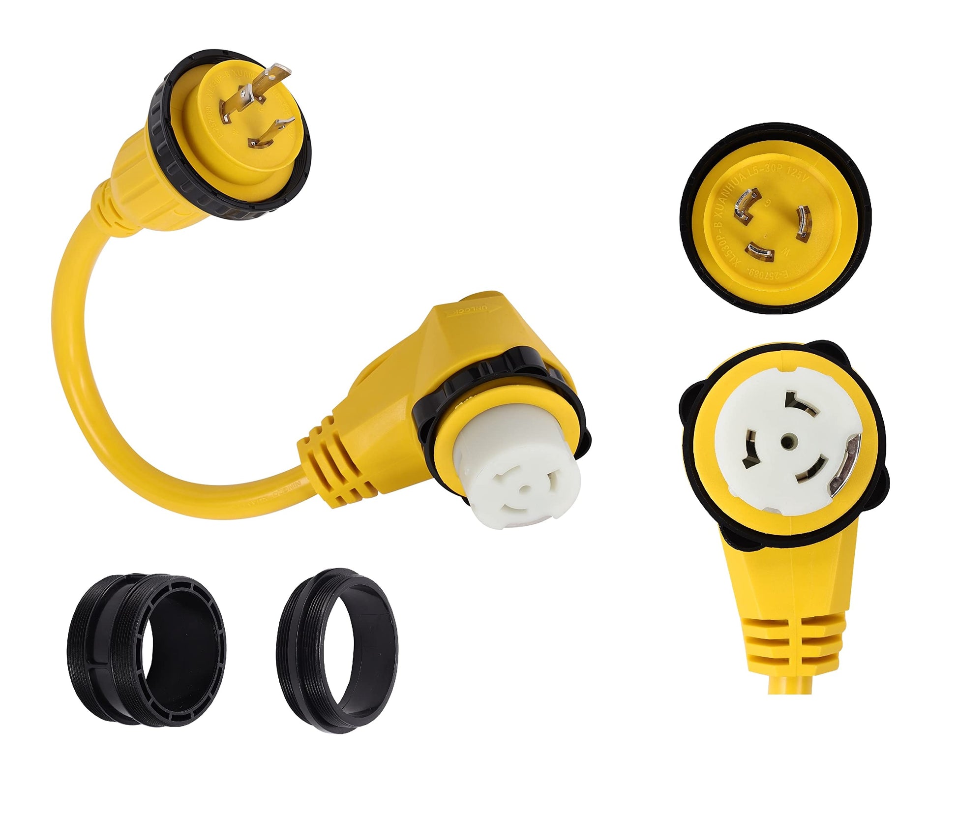 ONETAK L5-30P to SS2-50R 1.5FT Right Angle 90 Degree 120V 30 Amp 3 Prong Male to 4 Prong Twist Lock Receptacle Generator RV Marine Shore Boat Power Cord Adapter