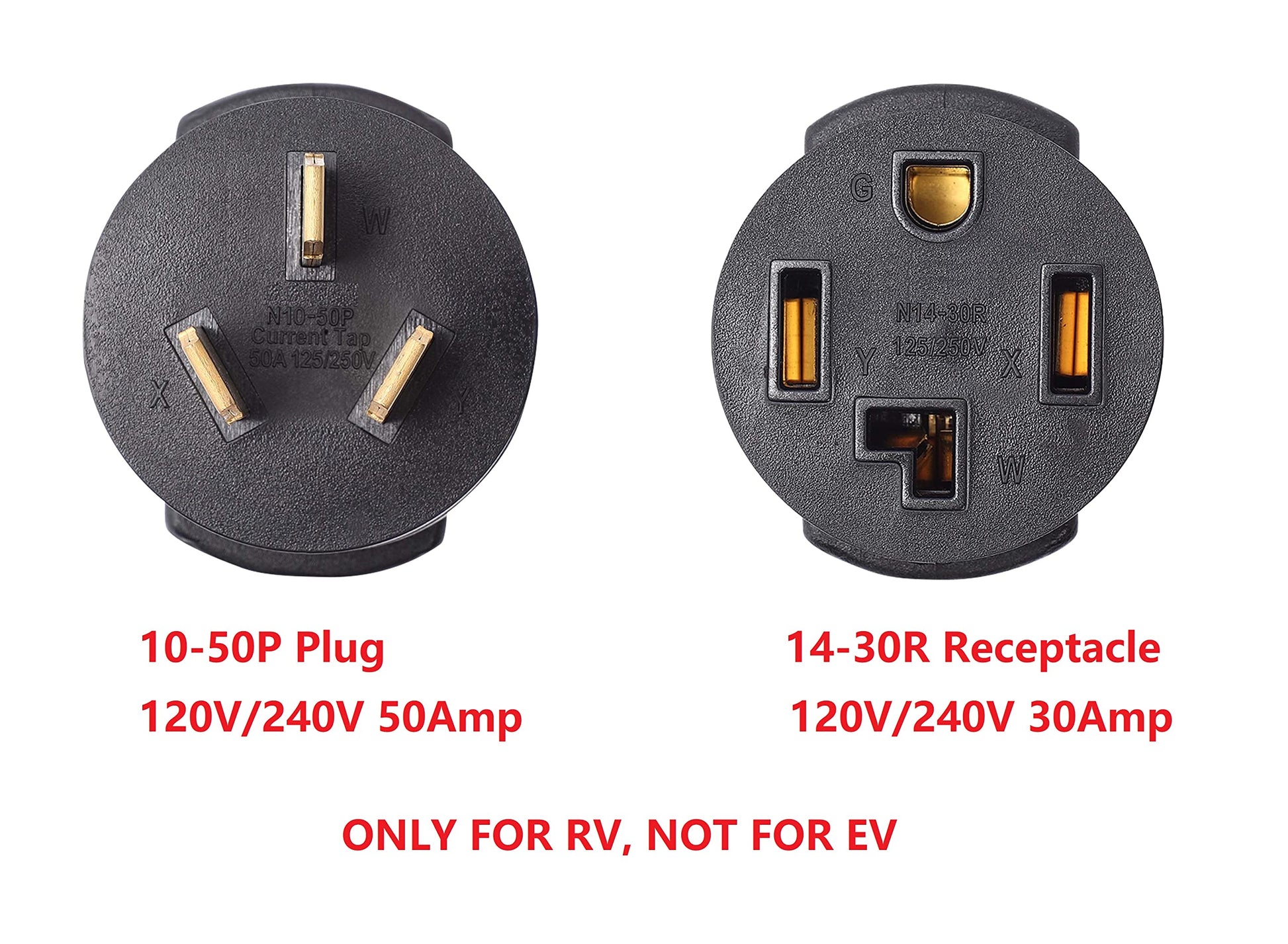 NEMA 10-50P to 14-30R Compact 120V/240V 30 Amp Power Cord Adapter