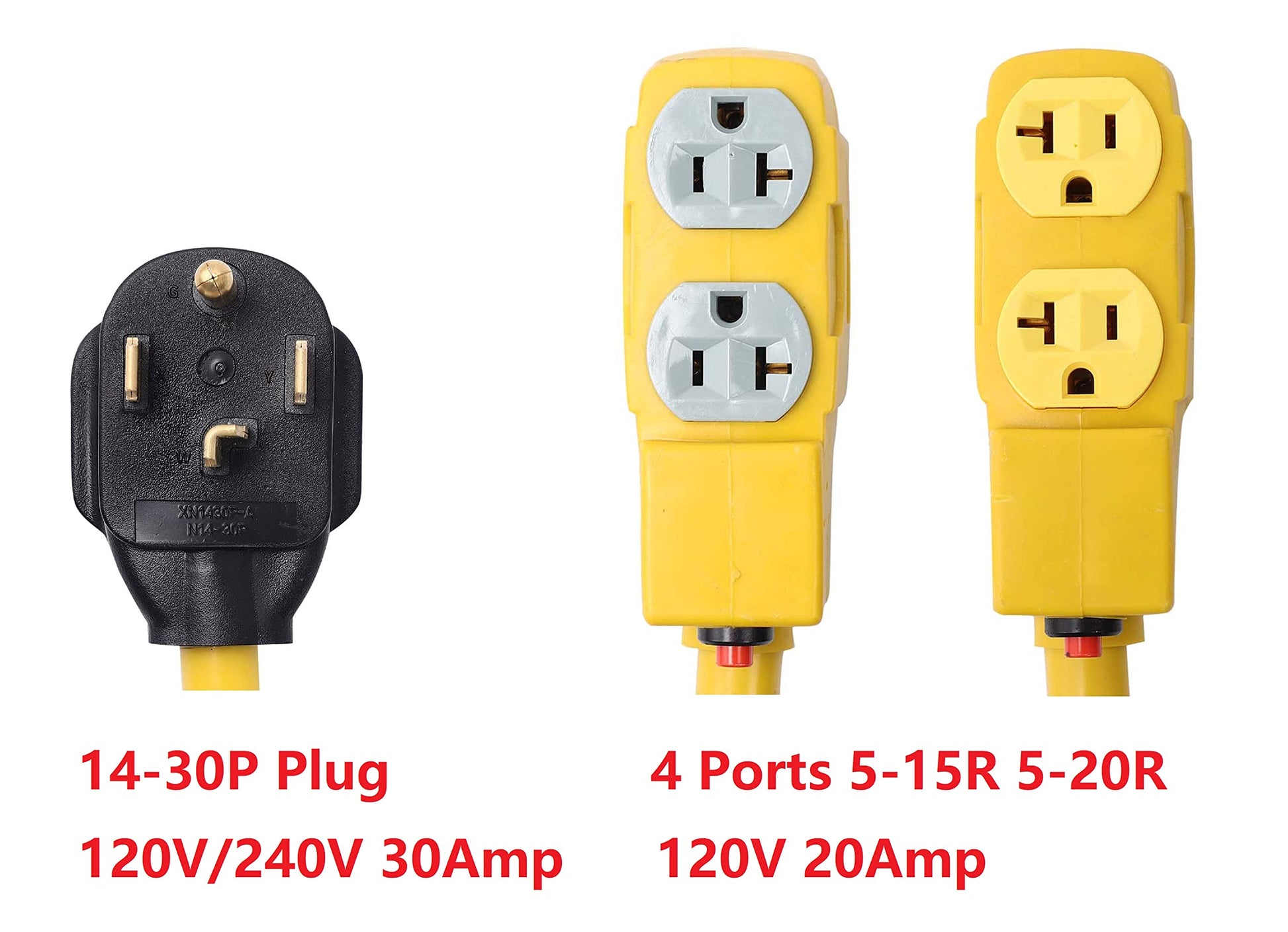 NEMA 14-30P to 4 Port 5-15R 5-20R 1.5 Feet 10 AWG 120V 20 Amp 4 Prong Male to 120V 20 Amp Home Appliance 3 Prong Receptacle Power Cord Adapter
