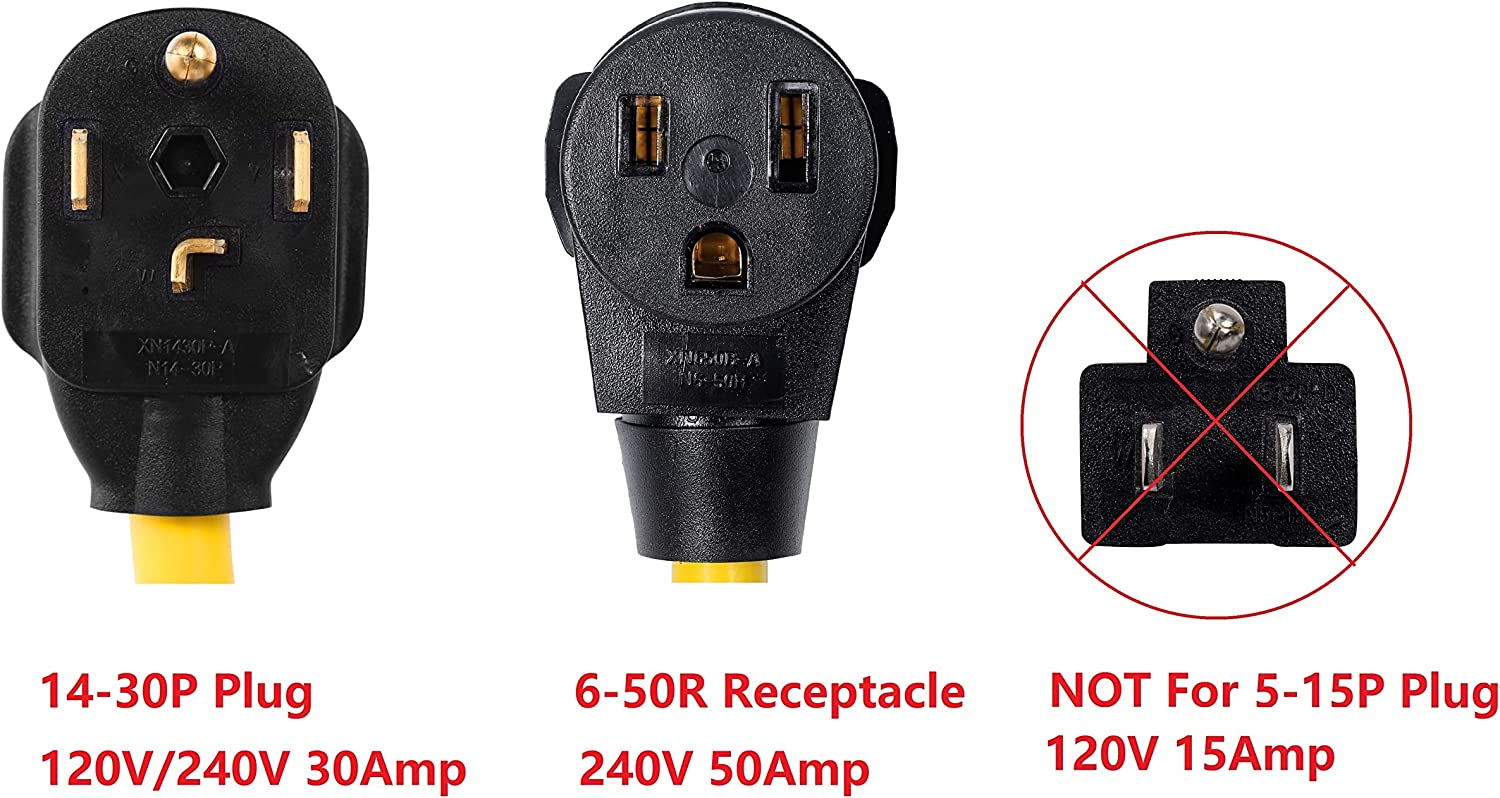 ONETAK NEMA 14-30P to 6-50R 240V 30 Amp 4 Prong Male to 50 Amp 3 Prong Female Power Cord Adapter