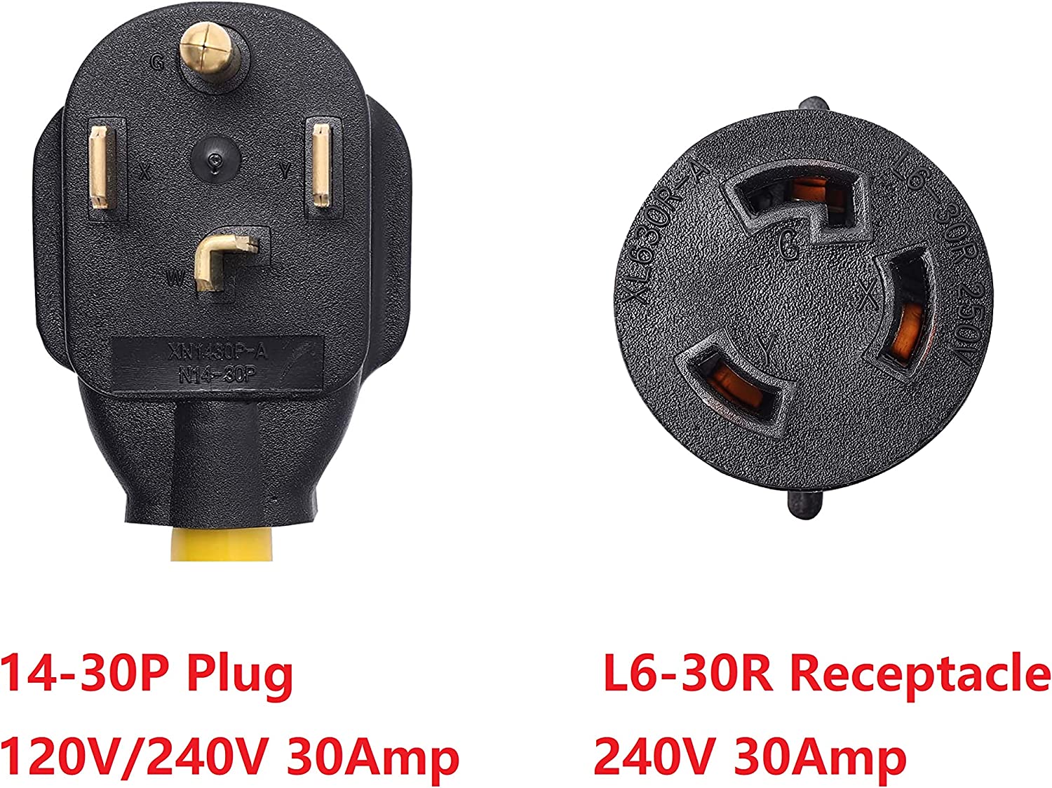 ONETAK NEMA 14-30P to L6-30R 240V 30 Amp 4 Prong Male Plug to Twist Lock 3 Prong Female Outlet Receptacle Welder Generator Dryer EV Charger Power Cord Adapter Adaptor