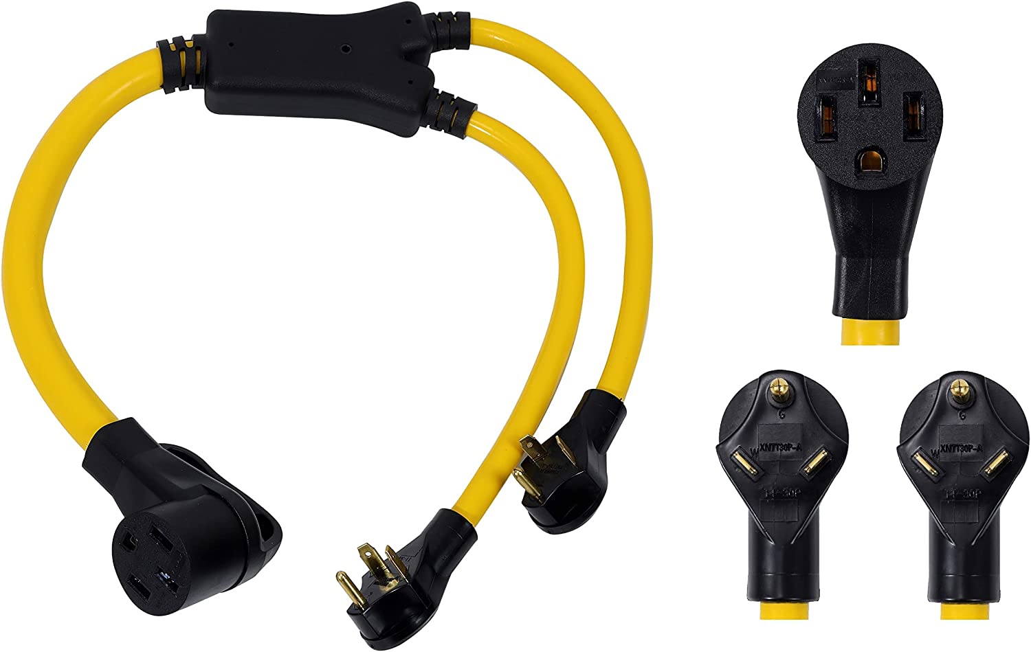 ONETAK NEMA 2 Port TT-30P 120V 30 Amp 3 Prong Plug Male to 14-50R 120/240V 50Amp 4 Prong Female Receptacle Y Combiner STW 3 Feet Welder Dryer Power Cord Adapter Connector