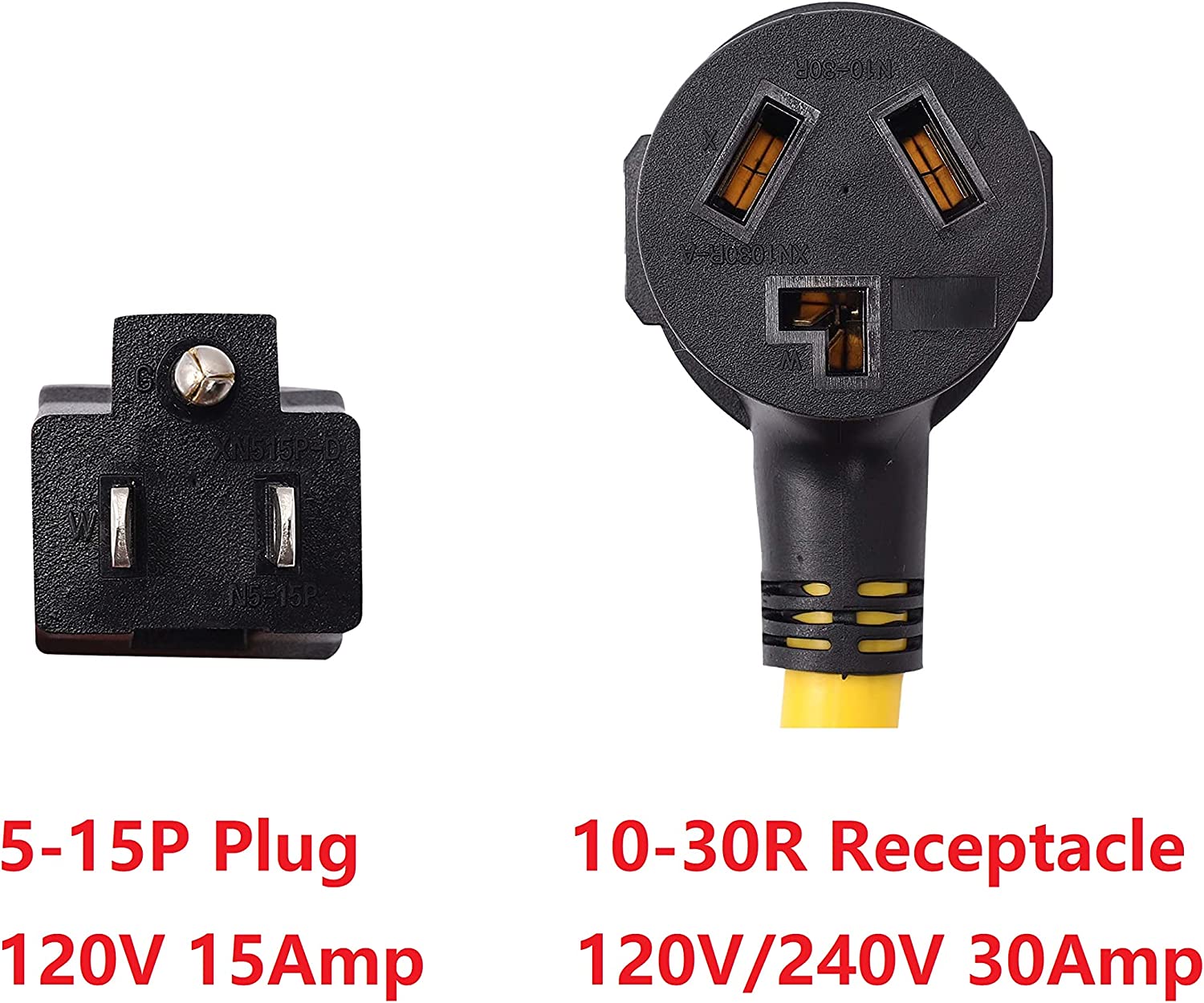 NEMA 5-15P to 10-30R 120V 15 Amp Power Cord Adapter