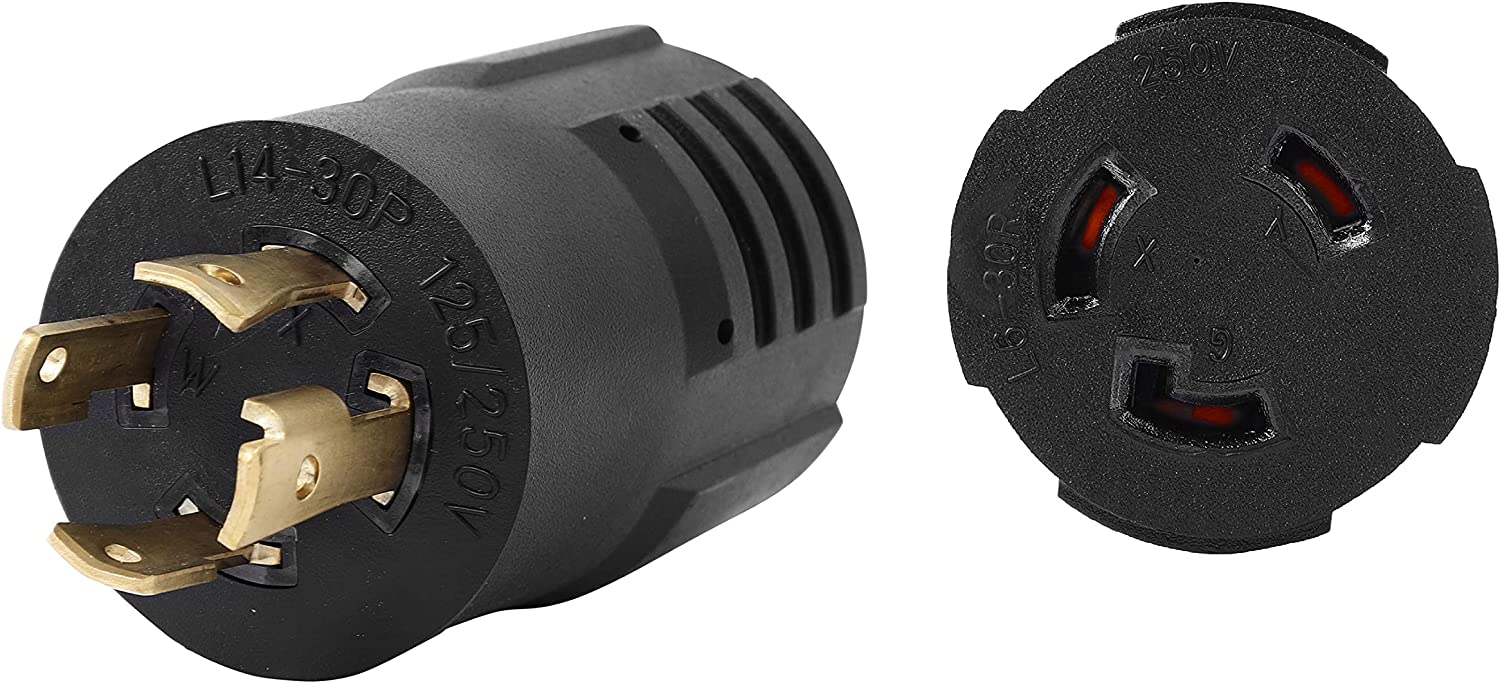 NEMA L14-30P to L6-30R 240V Compact 30 Amp Twist Lock 4 Prong Male to Twist Lock 3 Prong Female Power Cord Adapter