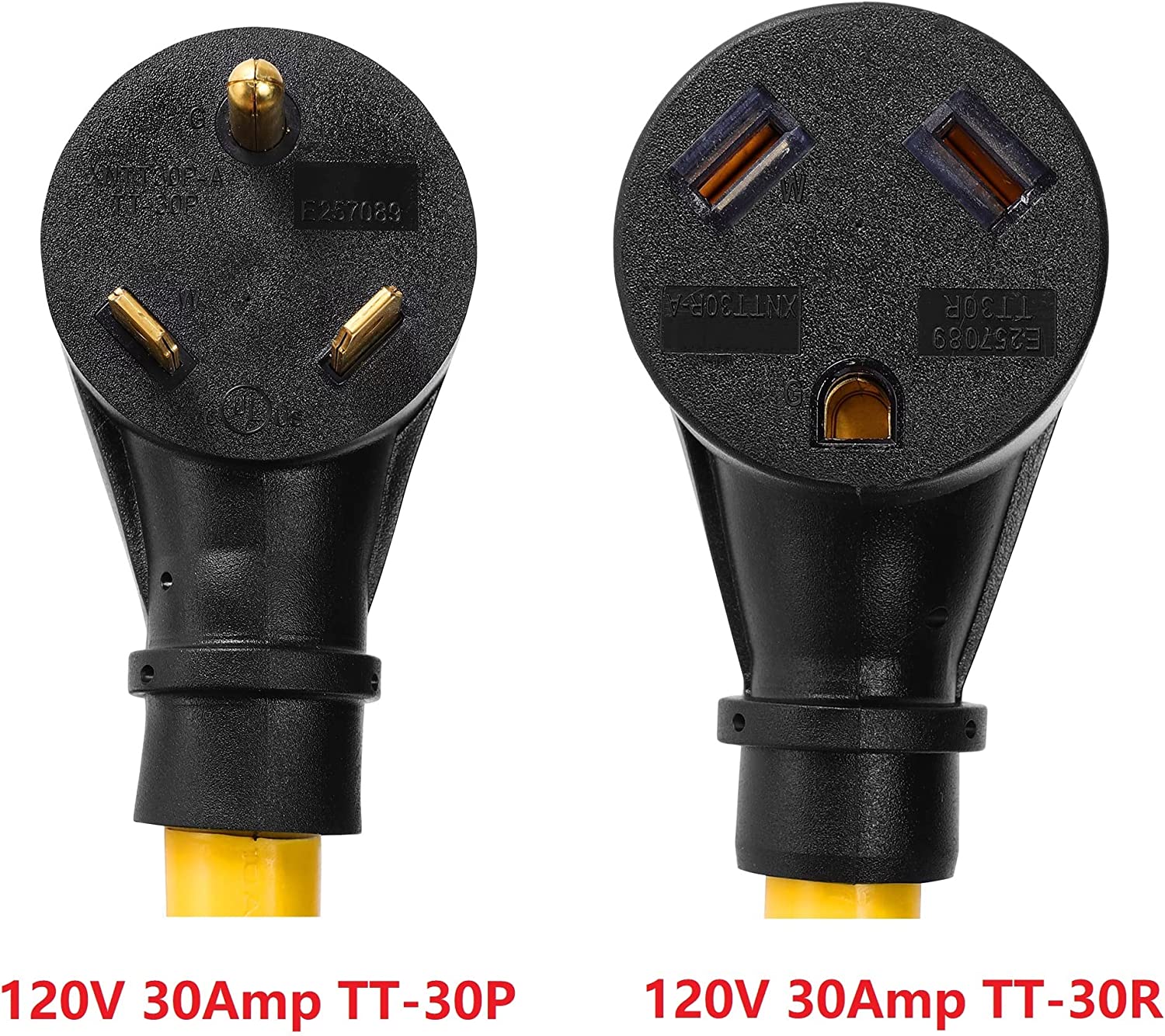 ONETAK TT-30P to TT-30R 15 Feet W/5-15P to TT-30R Adapater Combo Kit 120V 30 Amp 3 Prong Male Plug to Twist Lock 30 Amp 3 Prong RV Camper Travel Trailer Car Extension Cable Power Cord Adapter