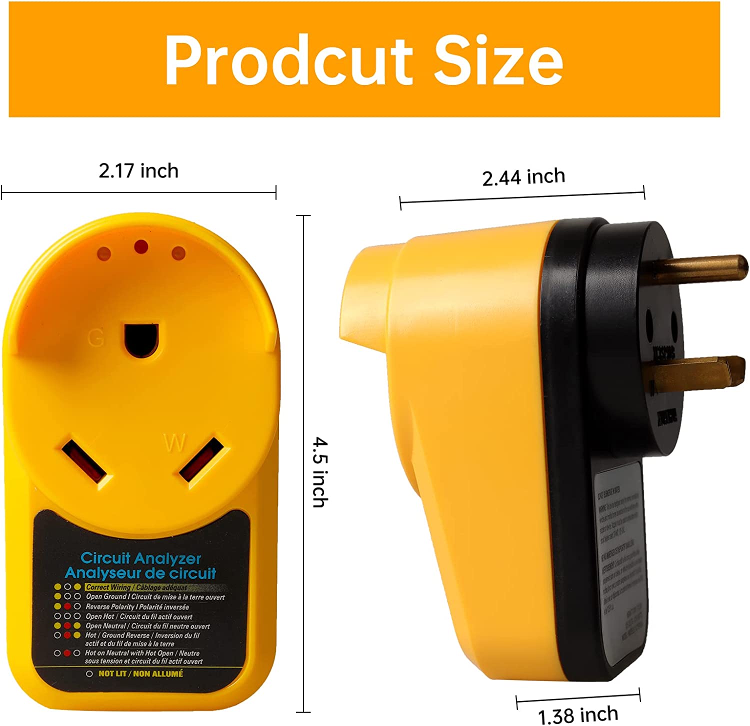 RV Surge Protector 30 Amp Circuit Analyzer with LED Indicator Light 30 Amp Male to 30 Amp Female for RV Trailer